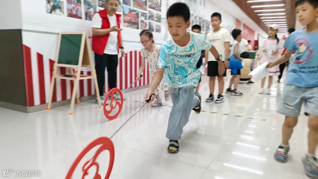 本次活动以传统游戏为主题,将国风与运动这两大元素相结合,设置了投壶、捶丸、滚铁环、套圈、射箭五个竞赛项目,在游戏的同时挖掘传统运动的文化魅力,解锁传统运动的现代表达。很多项目孩子们都是第一次尝试,他们在失败中总结经验,越玩越投入,热情高涨。有的凝神屏息一次次尝试套圈和投壶;有的自信大方,击球、入窝,引起现场一阵欢呼!社区长廊里弥漫着生动青春朝气,回荡着阵阵欢声笑语。
