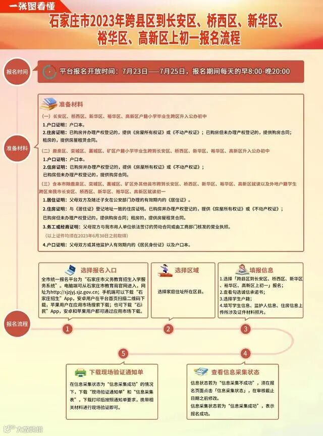 小升初跨区到长安区、桥西区、新华区、裕华区、高新区上初一网上报名即将开始,为了使家长更加清楚报名流程,石家庄市教育局发出三条温馨提醒。