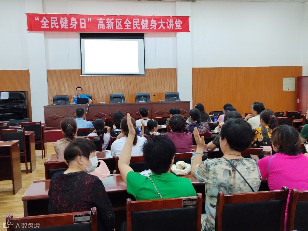 为推广健康生活理念,加强全民体育健身宣传,8月8日全民健身日当天,高新区文教局在区文化服务中心举办“全民健身大讲堂”活动。