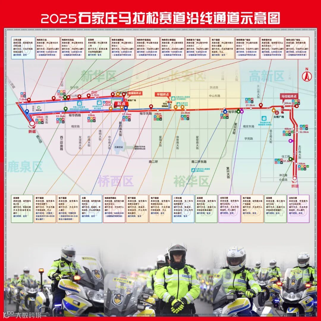 马拉松比赛当天,我局将通过省、市电台广播、石家庄交警微博密集播报实时路况,敬请市民在出行前掌握全市交通动态,合理选择出行线路。