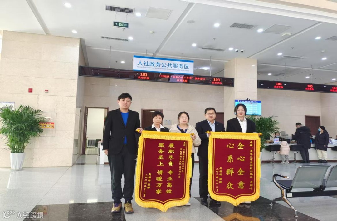 12月27日上午,办事群众赵女士手捧两面锦旗,驱车50余公里从元氏县专程送到了高新区社保中心,感谢为她解决了十二年前因参保登记信息错误问题造成的困扰。