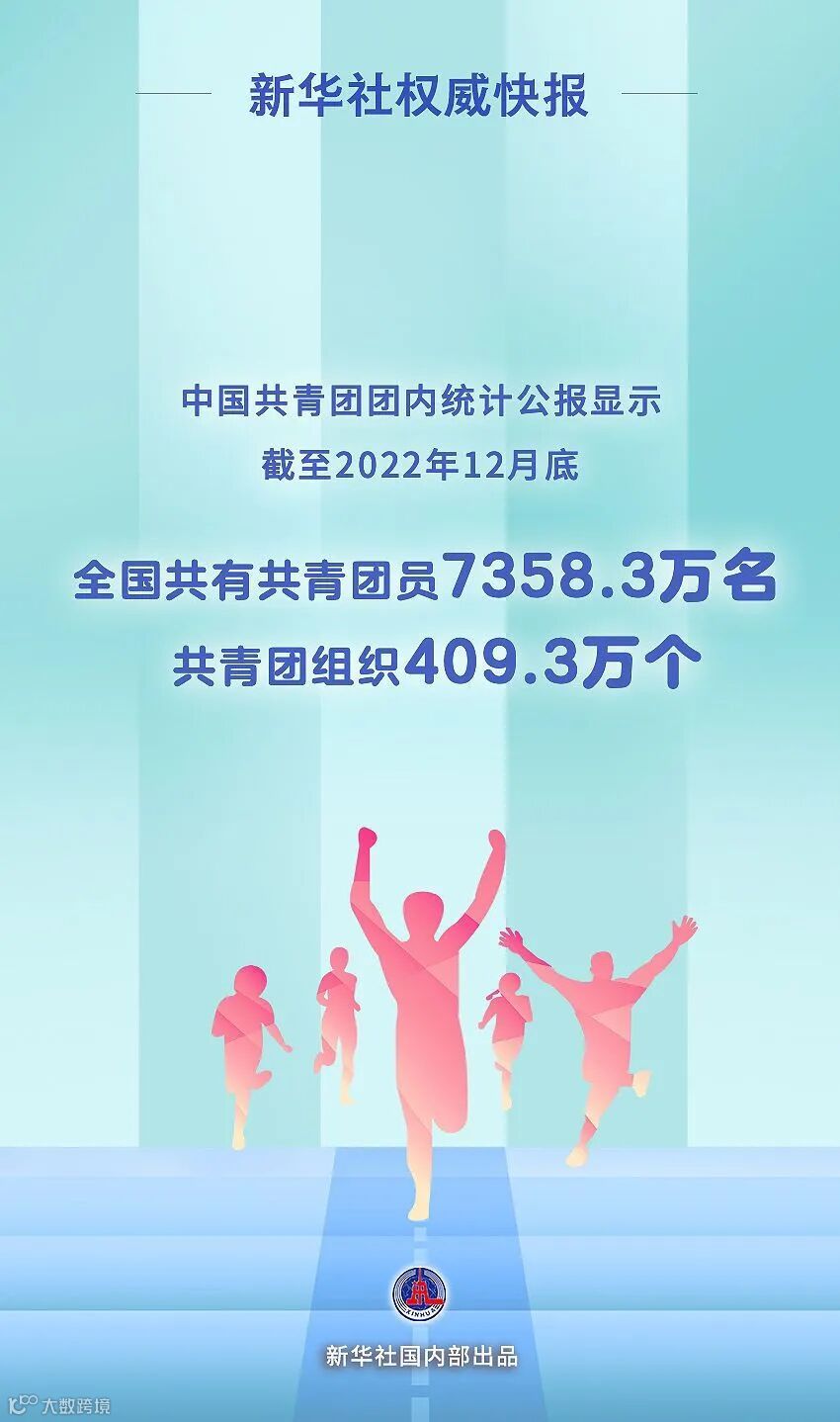 共青团中央3日发布的中国共青团团内统计公报显示,截至2022年12月底,全国共有共青团员7358.3万名,共青团组织409.3万个。