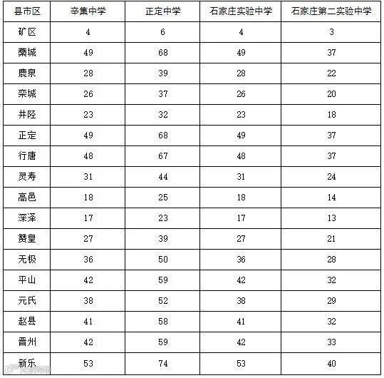 3、辛集中学、正定中学、石家庄实验中学、石家庄第二实验中学等最低控制分数线527分(含42中招各县部分的考生),音乐、美术、书法特长生文化最低控制分数线422分,专业控制分数线同市区一致;体育特长生文化成绩最低控制线264分,录取办法同市区。