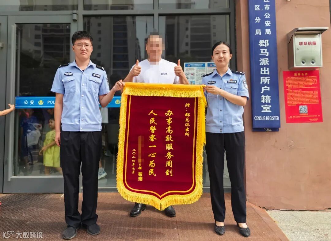 导读:7月23日,为表达对郄马派出所户籍室工作人员快速办理居住证的感激之情,市民郝先生特意送来一面印有“高效服务暖人心,为民解忧显真情”的锦旗。