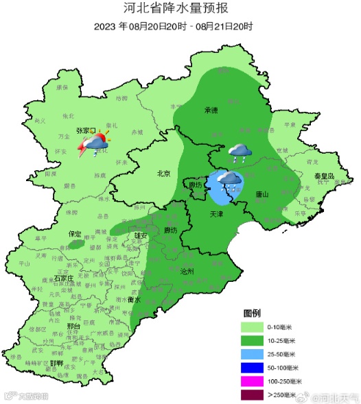 河北省气象台2023年08月18日11时发布天气预报: