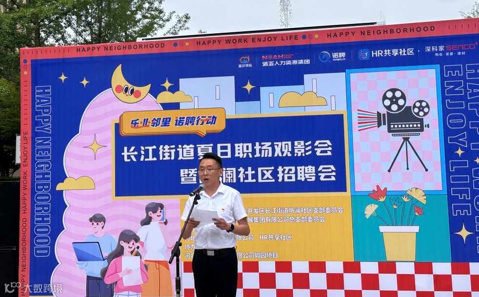 高新区长江街道听澜社区蓝牙驿站联合河北诺亚人力资源有限公司在如园小区东广场共同举办了长江街道夏日职场观影会暨听澜社区