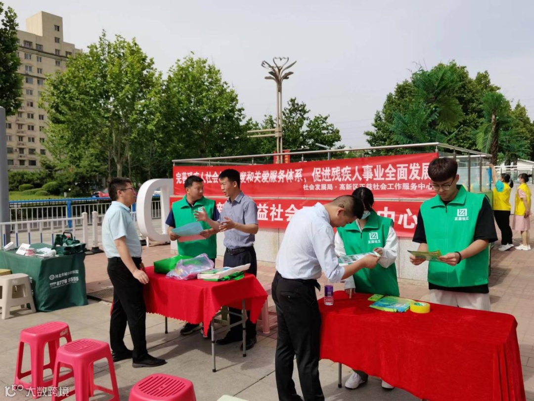 为切实保障和改善残疾人民生,更好维护残疾人合法权益,在第三十三次“全国助残日”来临之际,5月21日,围绕“完善残疾人社会保障制度和关爱服务体系,促进残疾人事业全面发展”的主题,高新区社会发展局携正益社工、石家庄学院教师教育学院志愿服务队、河北石药大药房连锁有限公司在天山海世界广场开展了形式多样的助残活动。