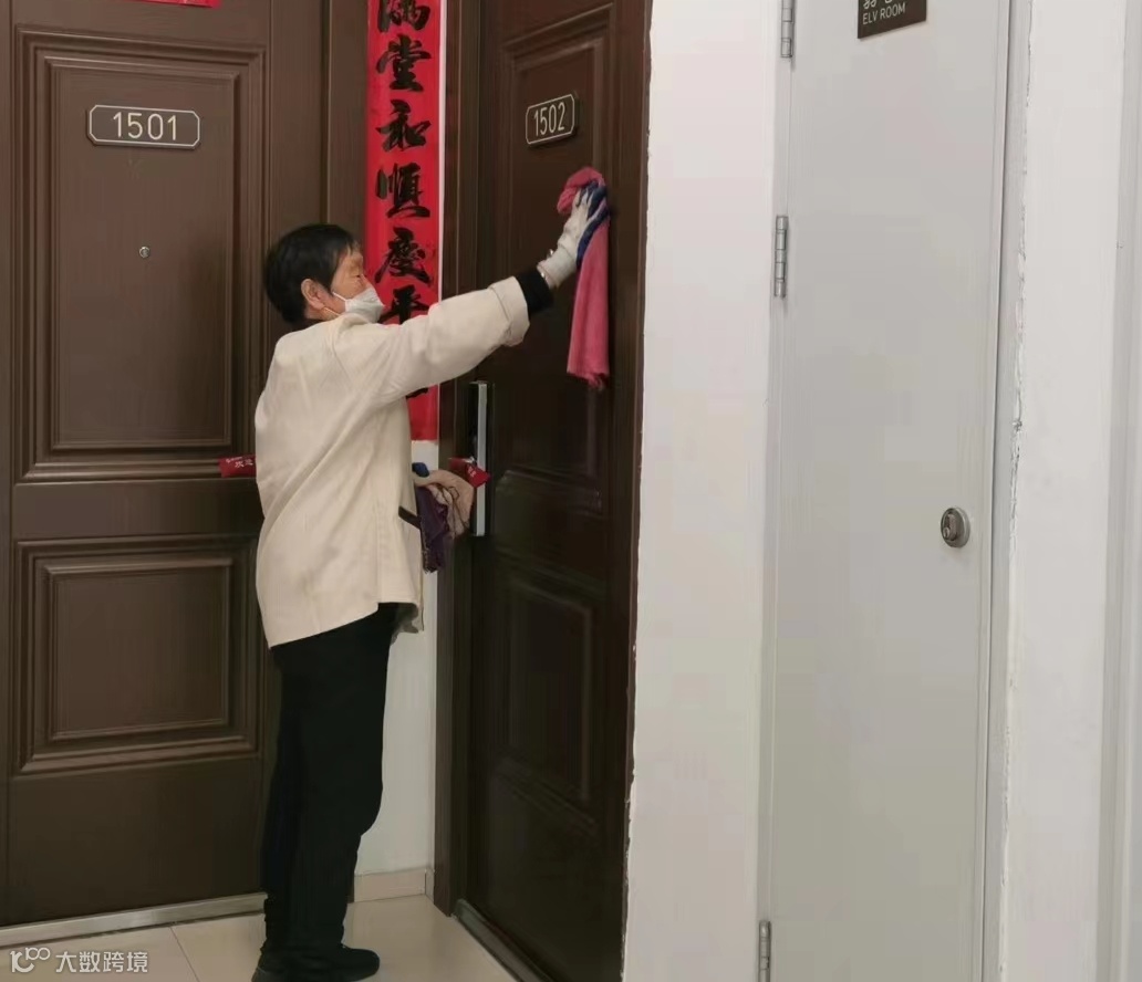 活动中,保洁工作人员认真擦拭小区居民的入户门,营造了干净整洁的卫生环境,让居民在生活小事中感受到社区浓浓的暖意,充分展现了社区服务的温度与价值,赢得了大家的一致称赞。