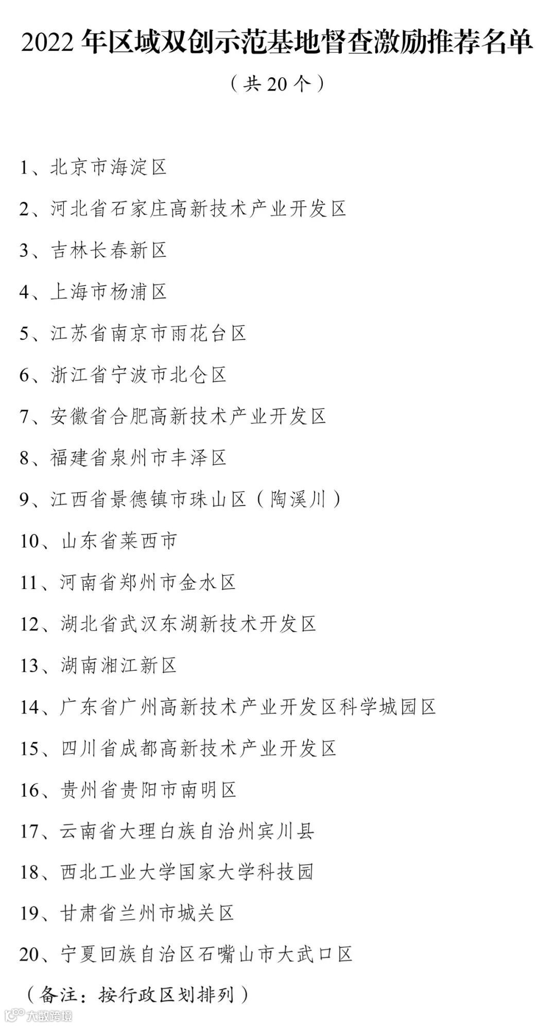 1月12日,国家发改委网站发布2022年区域双创示范基地督查激励推荐名单公示,