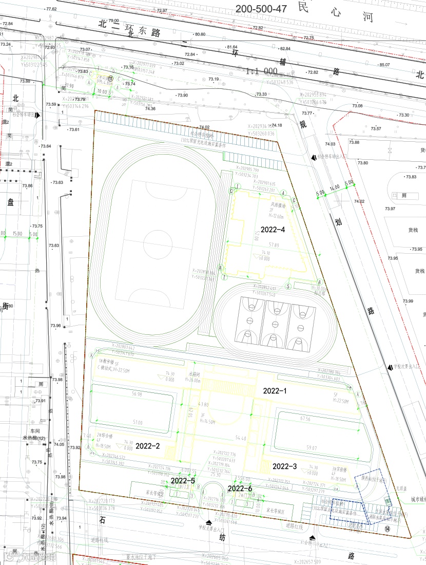 规划许可所附总平面图显示,该项目规划用地面积为3.789公顷(约合56.84亩),总建筑面积为22480.95平方米,其中地上21720.00平方米(小学9720.00平方米,初中12000.00平方米),地下760.95平方米。项目规划地面停车位100个。
