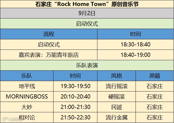 9月2日和3日,石家庄高新区火炬广场(裕华东路与华山街交口西南角),石家庄“Rock Home Town”原创音乐节演出活动火热举办!中国知名摇滚乐队万能青年旅店将现身现场,助力家乡原创音乐节。欢迎广大乐迷朋友踊跃加入,为原创音乐助力加油!