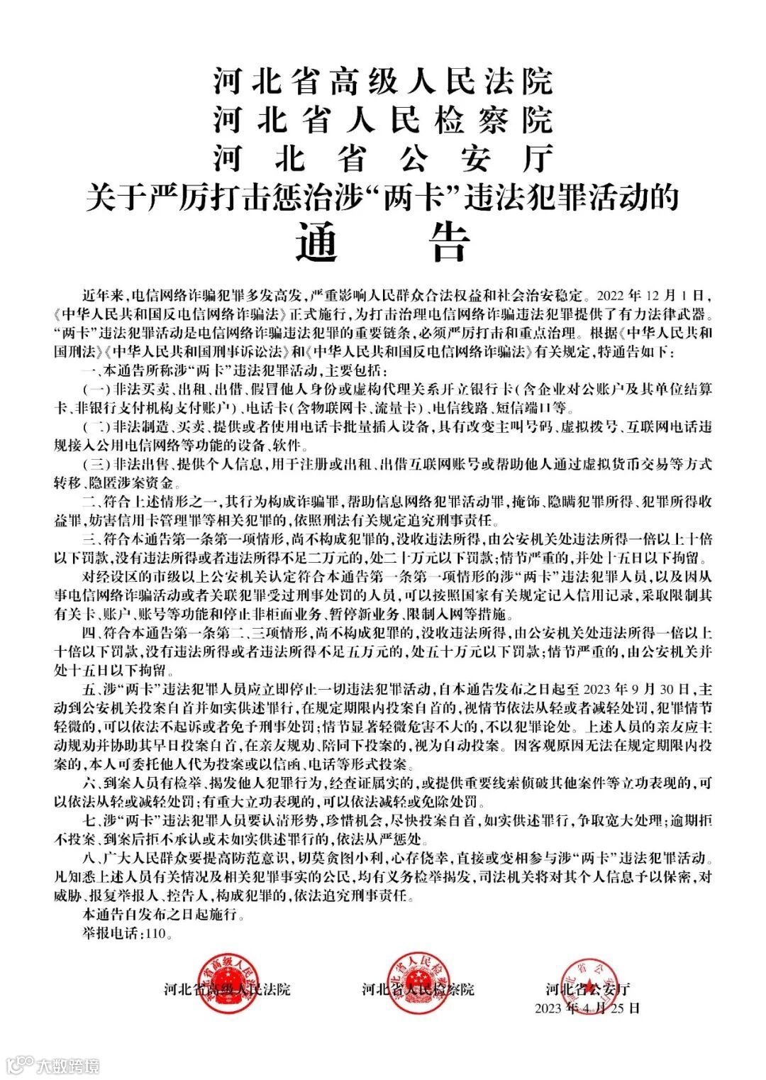 导读:关于严厉打击惩治涉“两卡”违法犯罪活动的通告