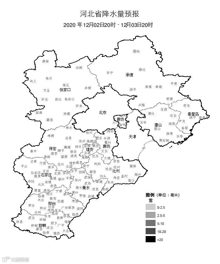 今天白天,廊坊南部,保定、雄安新区、石家庄、邢台、沧州、衡水阴有零星小雪或小雪,其他地区阴转多云。
