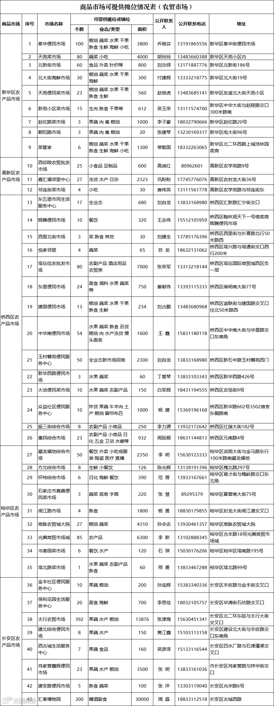商品市场可提供摊位情况表(农贸市场)
