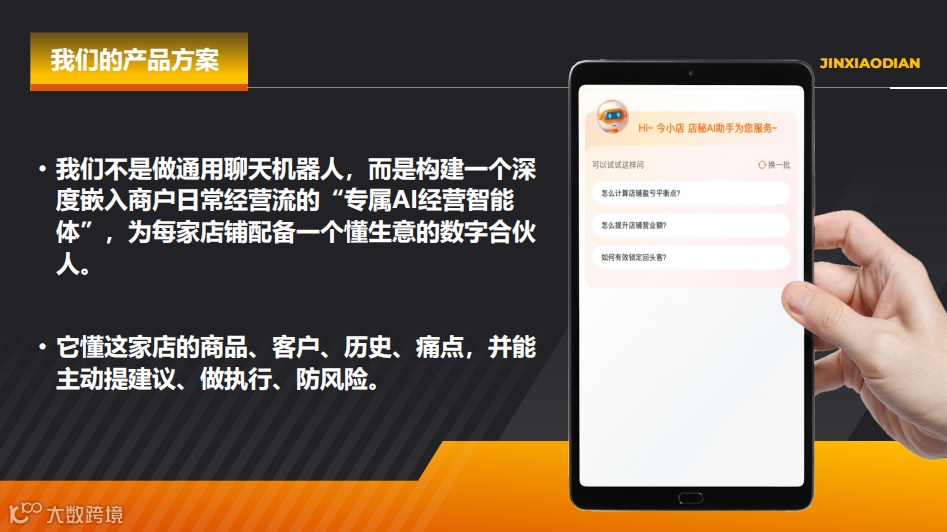 今融道CTO朱佳璐在发布会上表示:“AI技术不该是大企业的专属,我们要让每一家中小商户都能拥有专属的数字经营合伙人。”