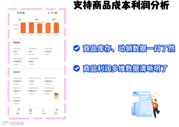 商户可实时掌握商品库存余量、毛利情况,避免缺货或积压,同时清晰知晓每款商品的利润贡献;