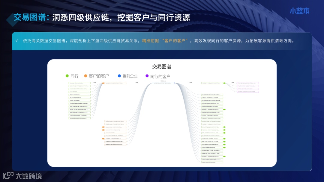 如果您是做电子配件的企业,担心伊朗航线受阻,担心客户失联导致订单无法履约,您完全可以通过系统直接筛选墨西哥或巴西的同类产品进口商。系统不仅会呈现这些企业的基本信息,还会通过交易图谱分析功能,深度剖析上下游四级供应链贸易关系,让您高效发现同行的客户资源。这种基于数据的市场切换,不再是盲人摸象,而是精准定位后的战略转移。