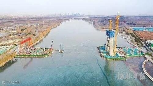 12月21日,石家庄太平河片区学府路东延跨太平河大桥施工现场。河北日报记者史晟全摄