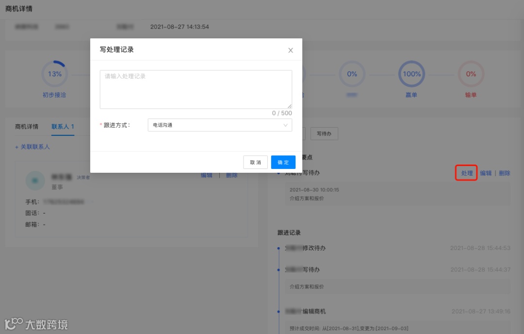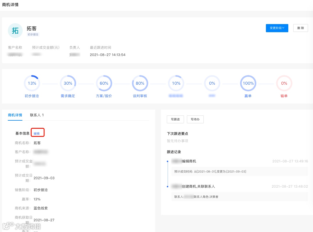 编辑商机后,系统会自动生成一条跟进记录。