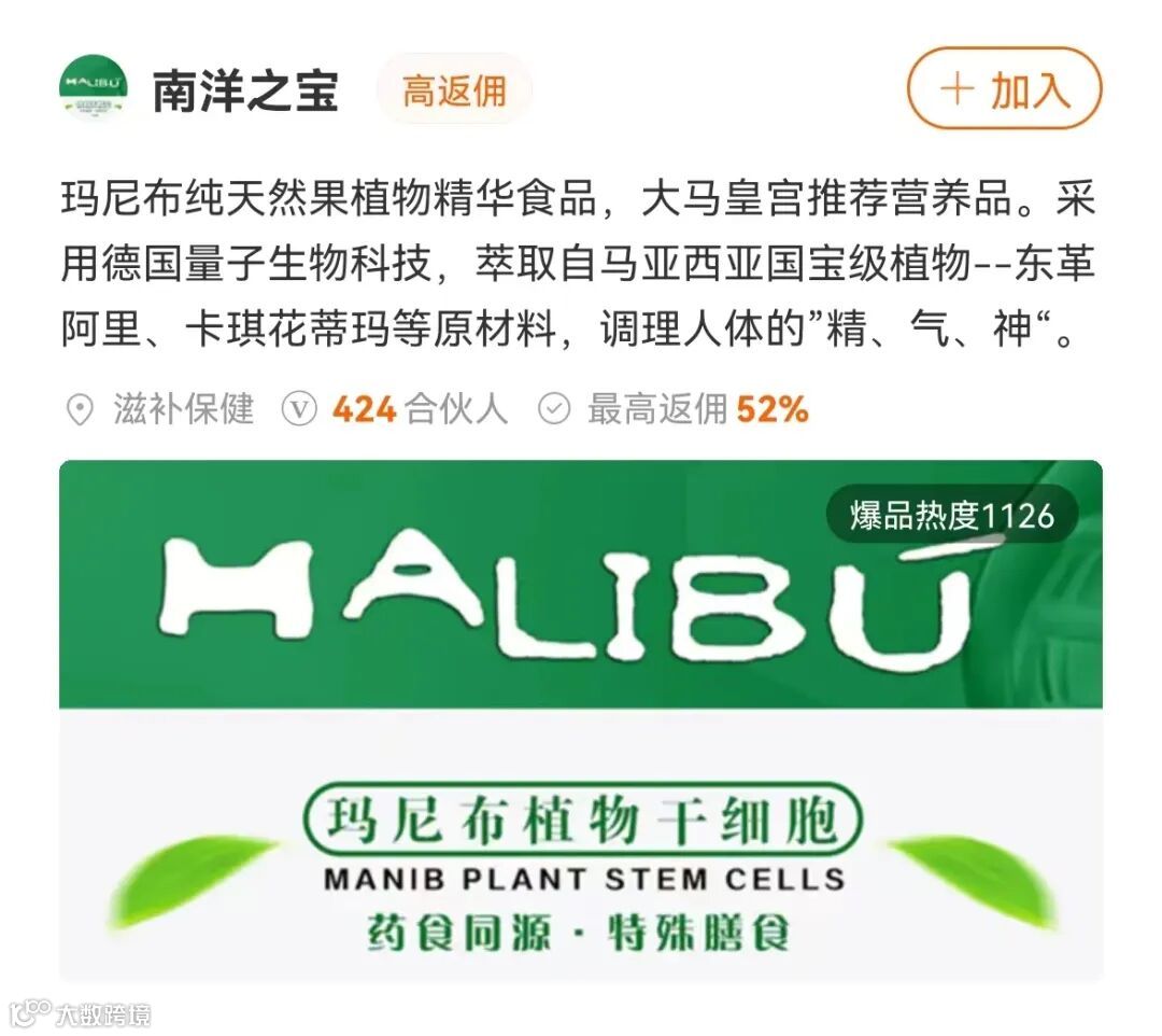 导读:「南洋之宝」是一个高额返佣的滋补品推广服务平台。目前推广产品为玛尼布南洋双宝。