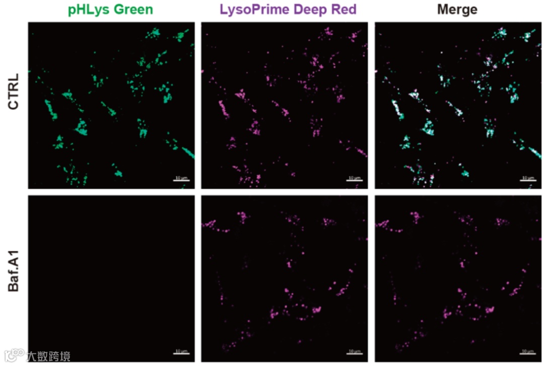 溶酶体中性化是研究溶酶体功能的常用手段。最常用的方法是使用Bafilomycin A1抑制V-ATPase,阻止H⁺进入溶酶体,导致内腔pH上升。