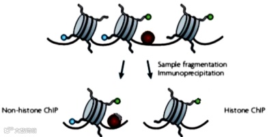 通常采用超声法(物理作用打破DNA共价键)或酶切法(如微球菌核酸酶MNase)对染色质进行片段化,150-1000bp的片段大小最适于免疫沉淀及下游检测,具体长度取决于实验类型,如ChIP-seq(150-250 bp)、ChIP-on-chip(150-400 bp)等。DNA 片段太大,影响 IP 效率已经ChIP的分辨率;DNA 片段太小虽然能得到更高的分辨率,但也会影响后续的 qPCR和建库。