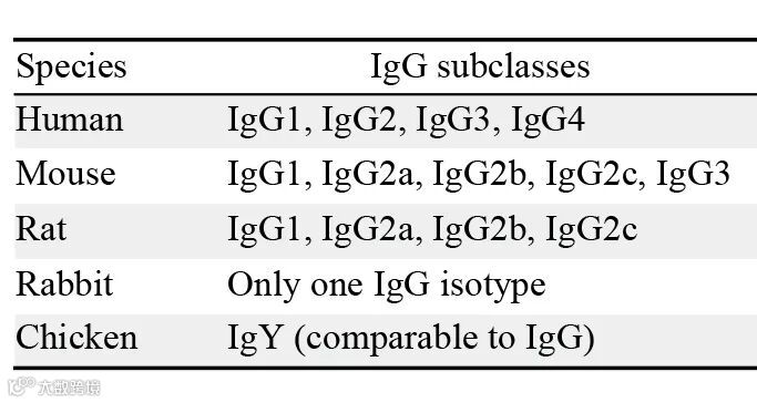 不同种属IgG的种类