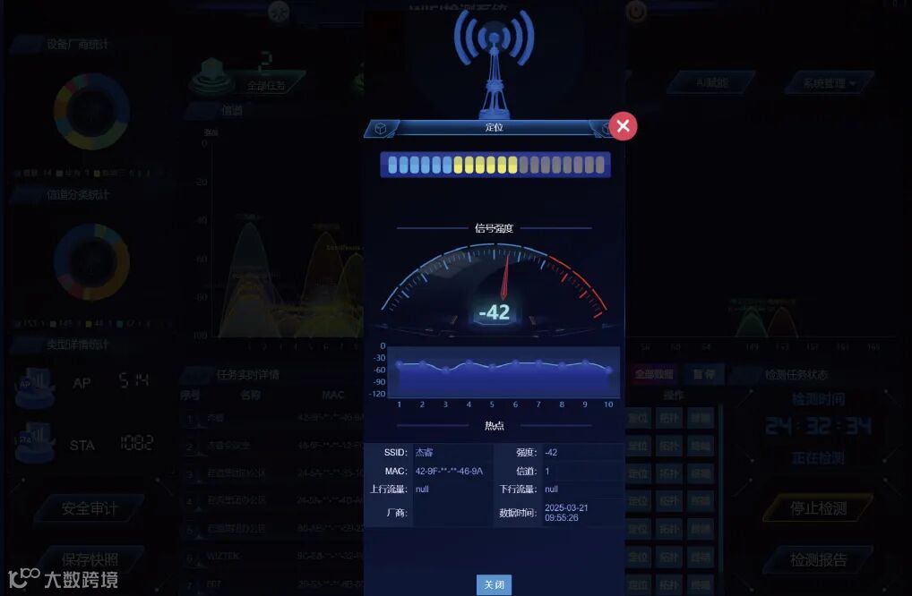 智能终端检测设备能够对智能穿戴设备进行全面检测。在检测功能方面,有无线信号检测、频谱检测、WIFI检测、终端检测、红光检测、热成像检测、内窥镜检测、报告等多功能检测防护。例如,发现检测疑似针孔摄像头 、疑似GPS定位、疑似FM窃听器、4G&5G音视频数据预警等。
