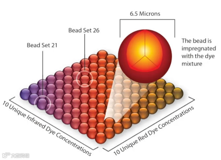 Luminex 技术的核心是 “微球编码 + 双荧光信号” 的巧妙结合: