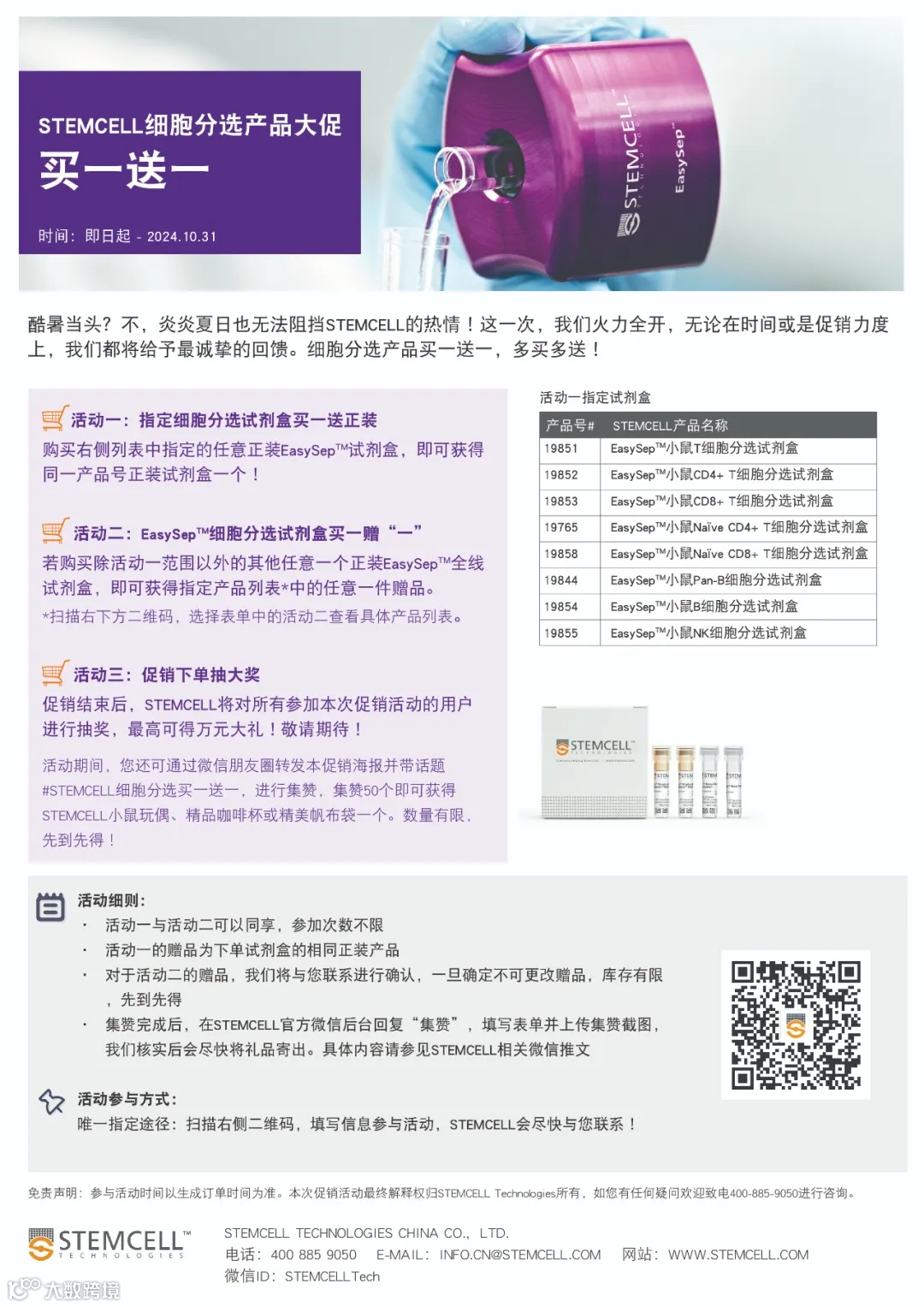 👇赶紧查看下方图片,参加STEMCELL的EasySep™买一送一大促活动吧!