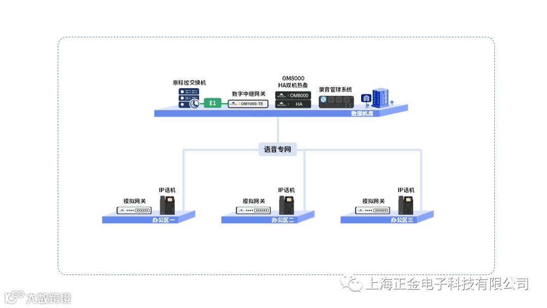 了解到上海天文馆语音系统需要与总部和运营商多种外线连接,同时需要录音备存的需求后,迅时为其定制了以下方案: