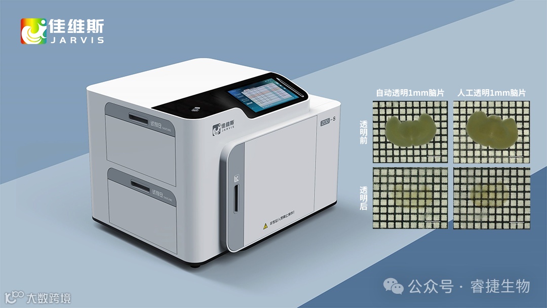 佳维斯自主研发的全自动、大尺寸、高通量样本的透明化设备,是国内第一台真正意义上的全自动透明化设备。