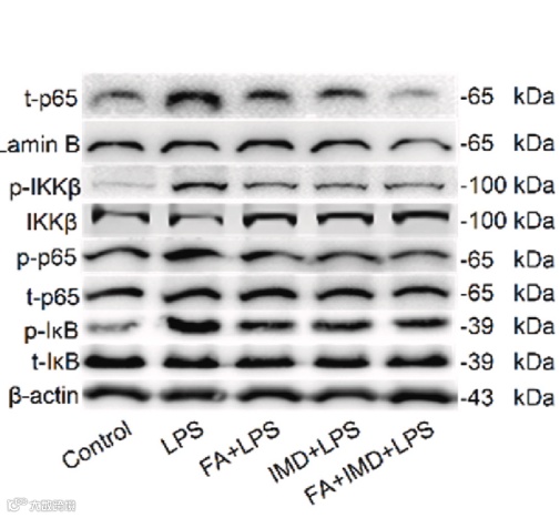 图 5.AbMole的IMD-0354(AbMole,M2769)在AT2细胞中成功抑制了NF-κB信号通路。