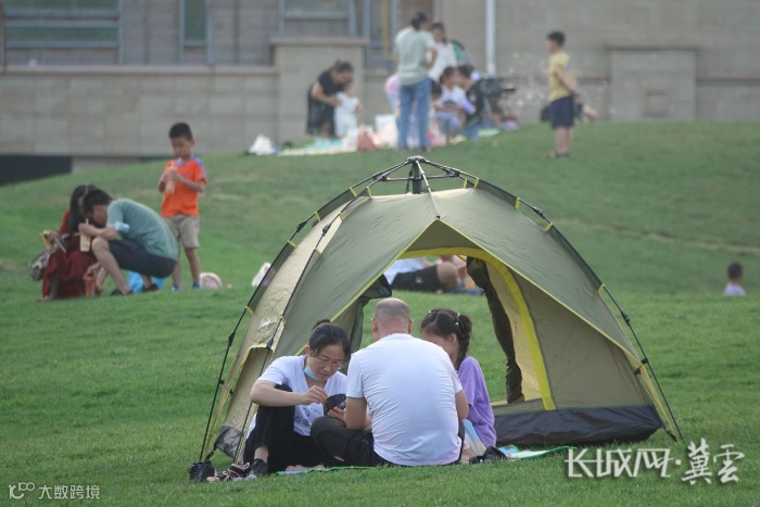 在阳光草坪上露营的市民。长城网·冀云客户端记者 朱昊明 摄