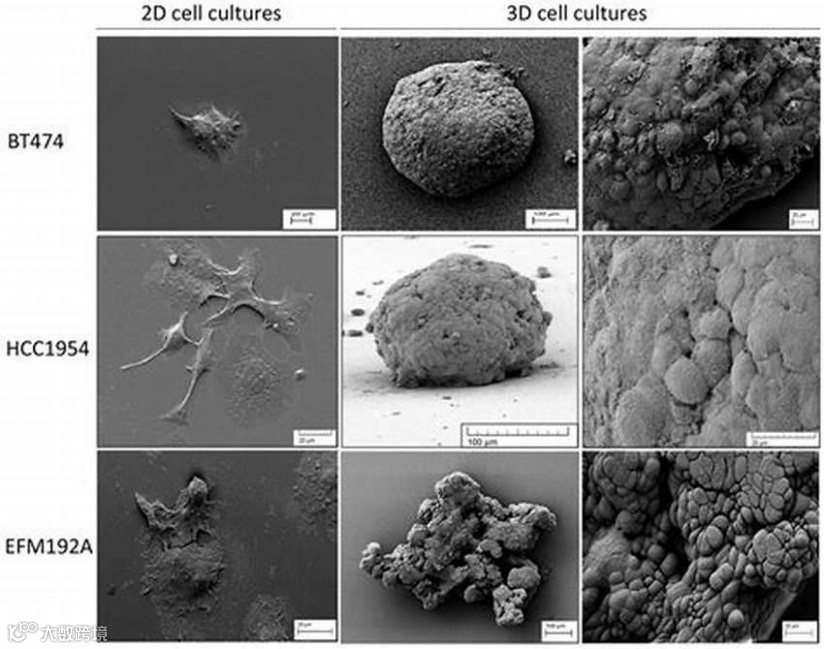 Breslin 等学者于2016年在《Oncotarget》期刊发表的研究表明,不同细胞系在二维或三维培养条件下展现出不同的细胞形态。