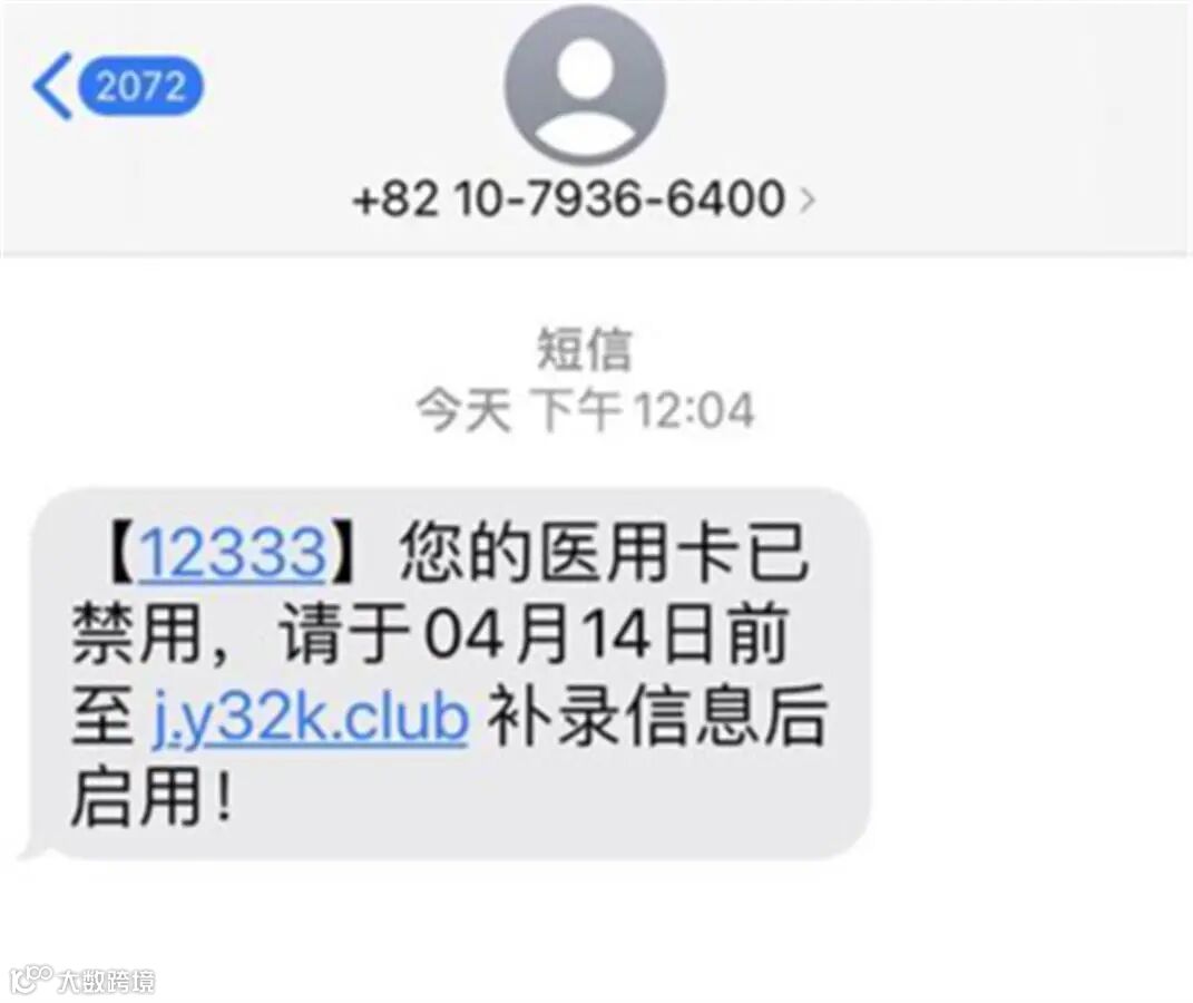 “【12333】您的医用卡已禁用,请于04月14日前至j.y32K.club补录信息后启用!”