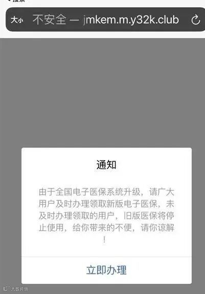 记者登录国家医疗保障局官网看到,该局已在其首页以弹窗的方式发表严正声明:“近日,有群众反映收到短信通知,要求升级医保相关账户。在此严正声明:我局未以短信形式发送此类通知,我局官方网站网址结尾均以nhsa.gov.cn为标识,其他地址均为假冒。”