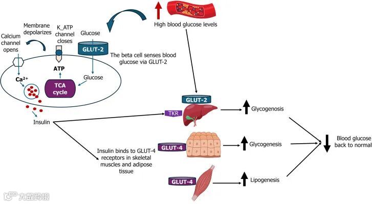 相反,在2型糖尿病中,高血糖和脂毒性等慢性代谢应激会引发β细胞功能障碍和细胞凋亡增加。尽管β细胞最初试图通过增殖来代偿,但其再生能力会随着时间的推移而减弱,最终导致β细胞逐步走向衰竭。此外,β细胞去分化(即β细胞失去分化表型以及胰岛素分泌能力),或转分化(β细胞分化为其他产生胰岛激素的细胞)是2型糖尿病的其他诱发因素。该过程会进一步损害胰岛素分泌并加剧高血糖症状。