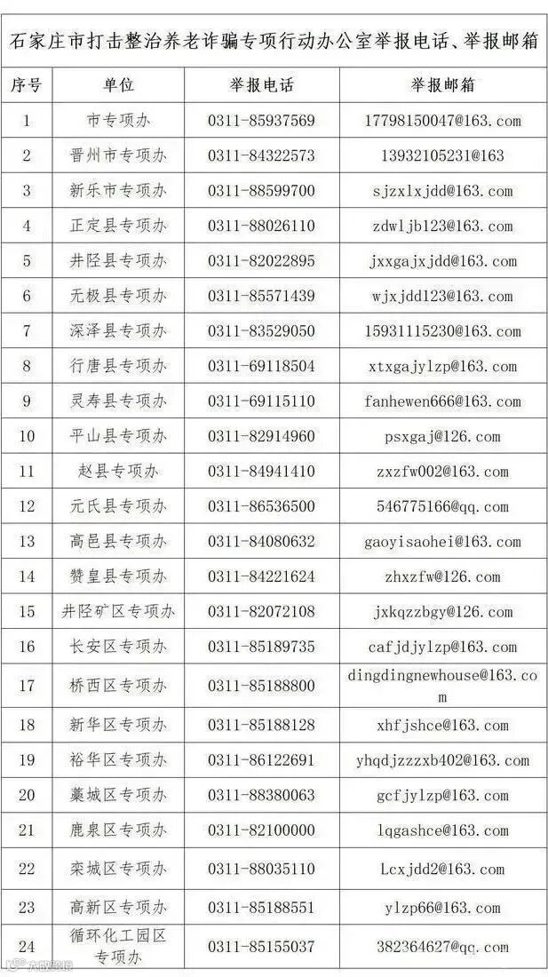 石家庄市打击整治养老诈骗专项行动办公室有关负责人表示,欢迎广大群众踊跃举报养老诈骗违法犯罪问题线索,并将依法保护举报人,有效回应群众诉求。对恶意举报、诬告陷害他人的将依法追究法律责任,对举报人实施打击报复的将坚决依法严惩。