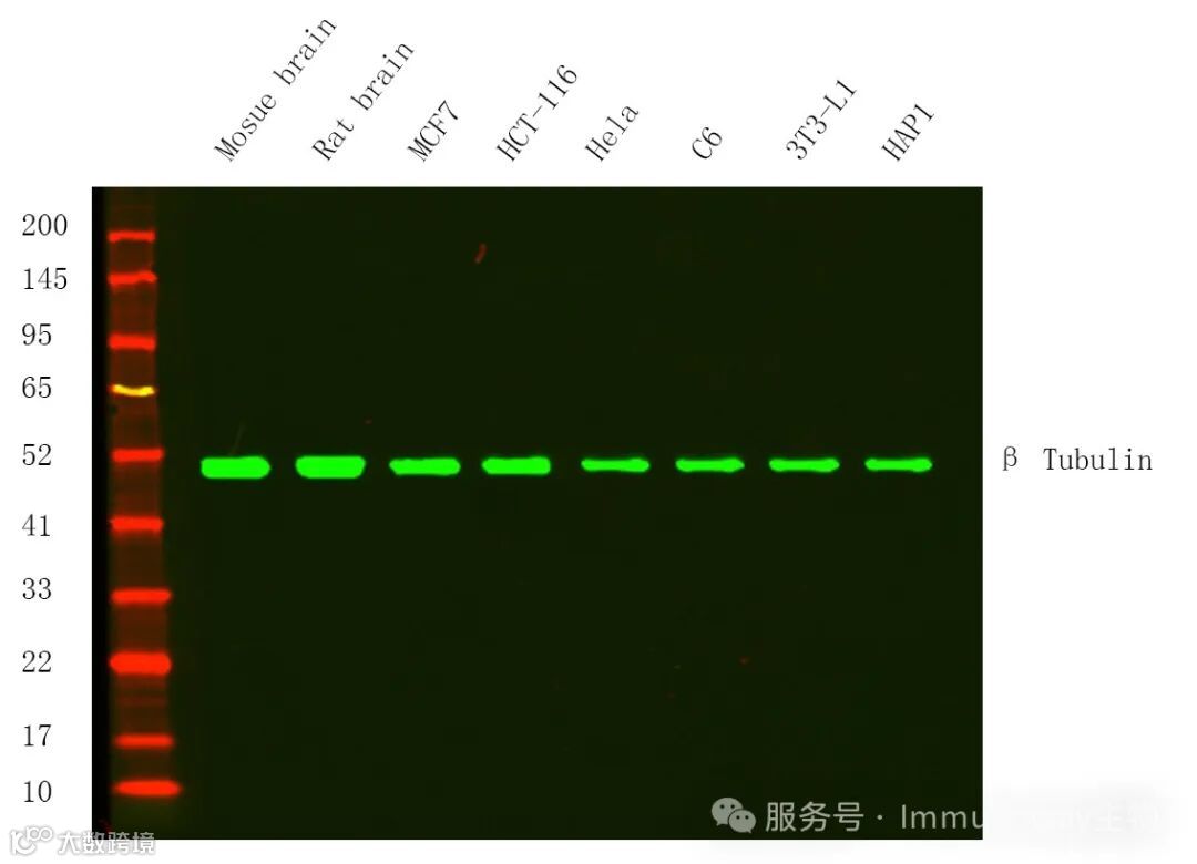 卓越特异性,超高稀释比例:IHC 1:2000-1:10000; WB 1:2000-1:10000; IF 1:200-1:1000; ELISA 1:5000-1:20000; IP 1:50-1:200;