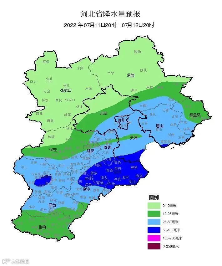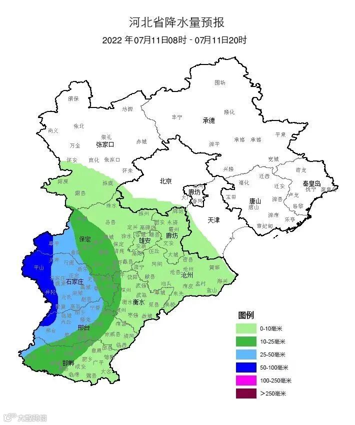 预计明天中午到夜间,我市有一次区域性大到暴雨天气过程,全市平均降雨量 30—50 毫米,平山、灵寿、行唐、井陉、井陉矿区、元氏、赞皇和鹿泉40—70 毫米,个别点超过 100 毫米。降雨时伴有雷电和短时强降水等强对流天气,个别点有短时大风,最大小时降雨量 30—50 毫米。