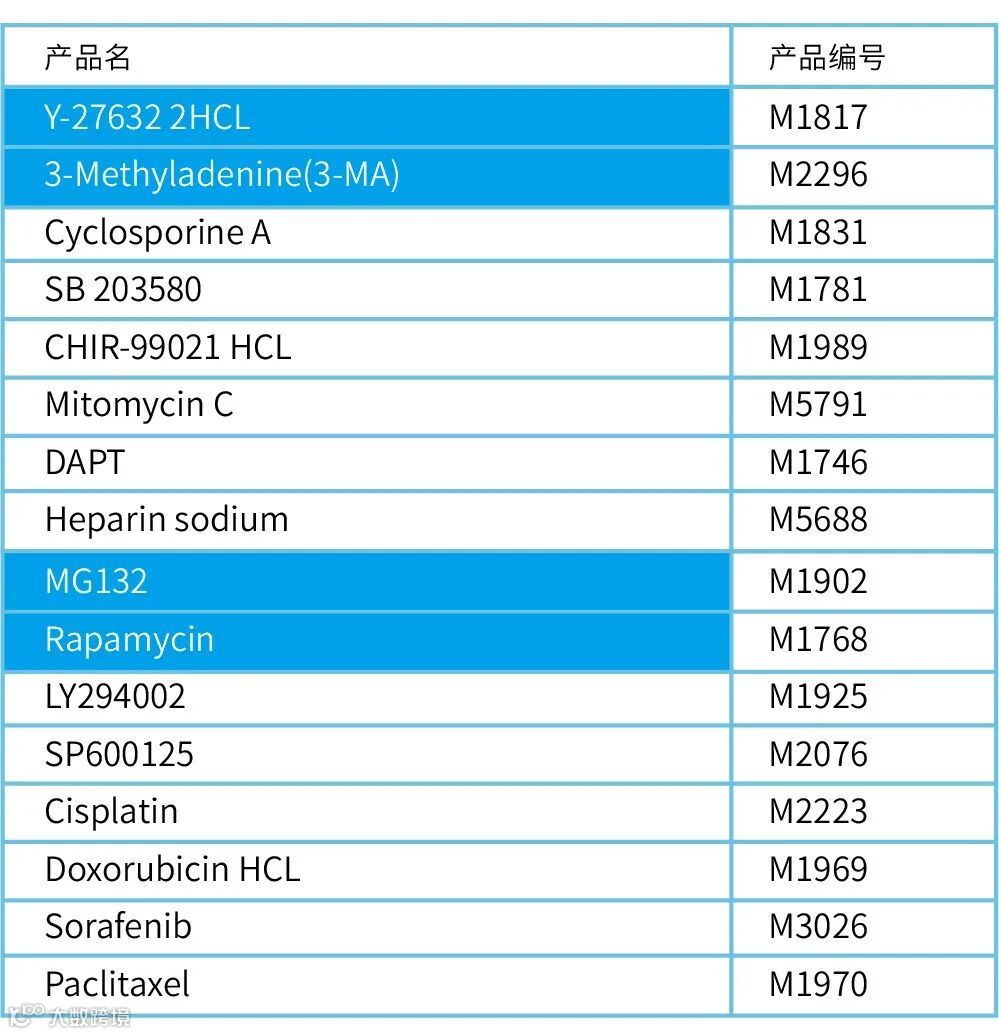2. 各抑制剂类产品均提供1mg赠用装。*另外,CCK8提供的规格为:100T,蛋白酶抑制剂Cocktail提供的规格为:1mL,G418提供的规格为:100mg。