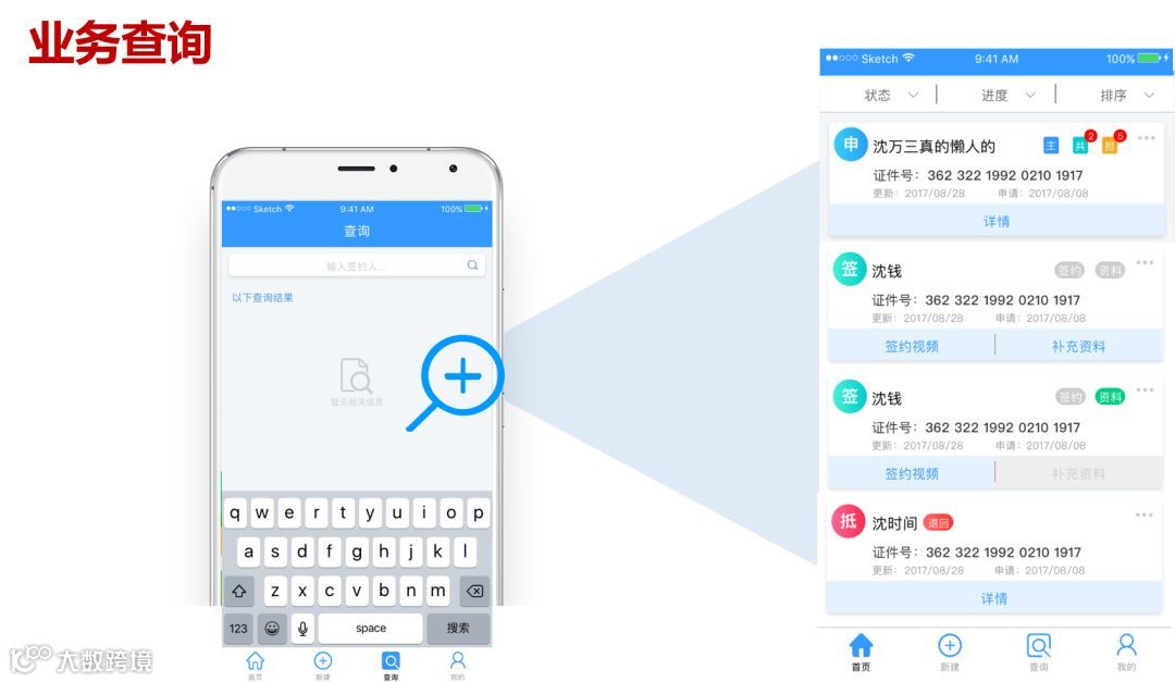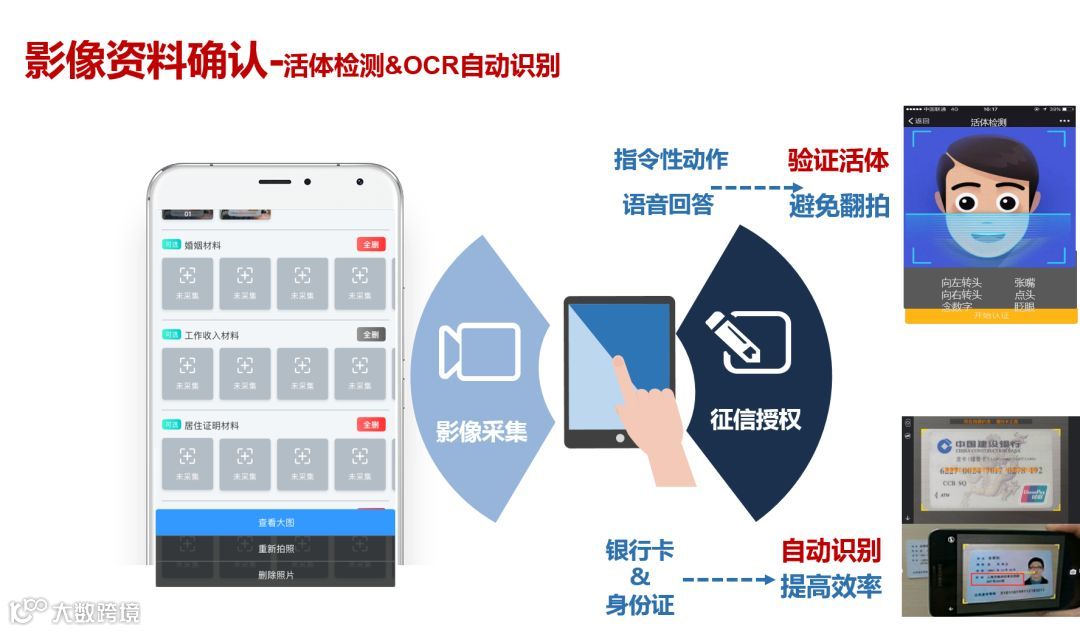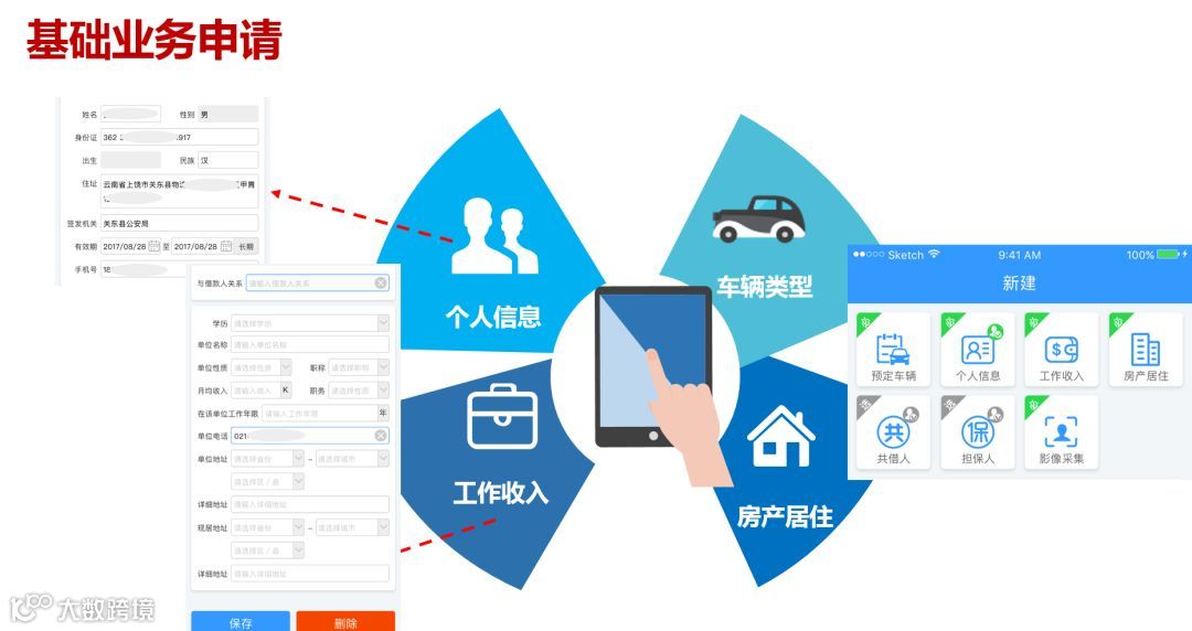 设计移动端业务系统APP,是为最大程度地满足客户的需求,实现流程、功能、界面定制化,使APP与客户自有流程高度契合,助力其业务发展。移动进件的最大创新在于将所有文字输入、资料拍摄集中在手机端实现,取代了传统电脑端的操作模式,同时解决了大量纸质资料邮寄耗时、影响业务办理效率、占用存储空间的问题,真正做到手机携身,便可随时随地办理业务。