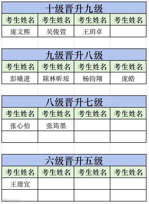 晋级考试是考验学员阶段性学习成果的最好方式。考试中大家发挥了应有的水平。现将晋级名单公布如下: