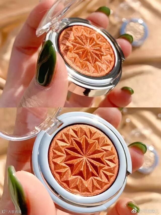 它看上去比较偏古铜色,但是上脸就很nice,让你像打了10斤玻尿酸一样,立马变成3D立体脸,360度无死角,用波光粼粼来形容一!点!也!不!夸!张!