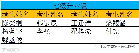以下为考级通过名单