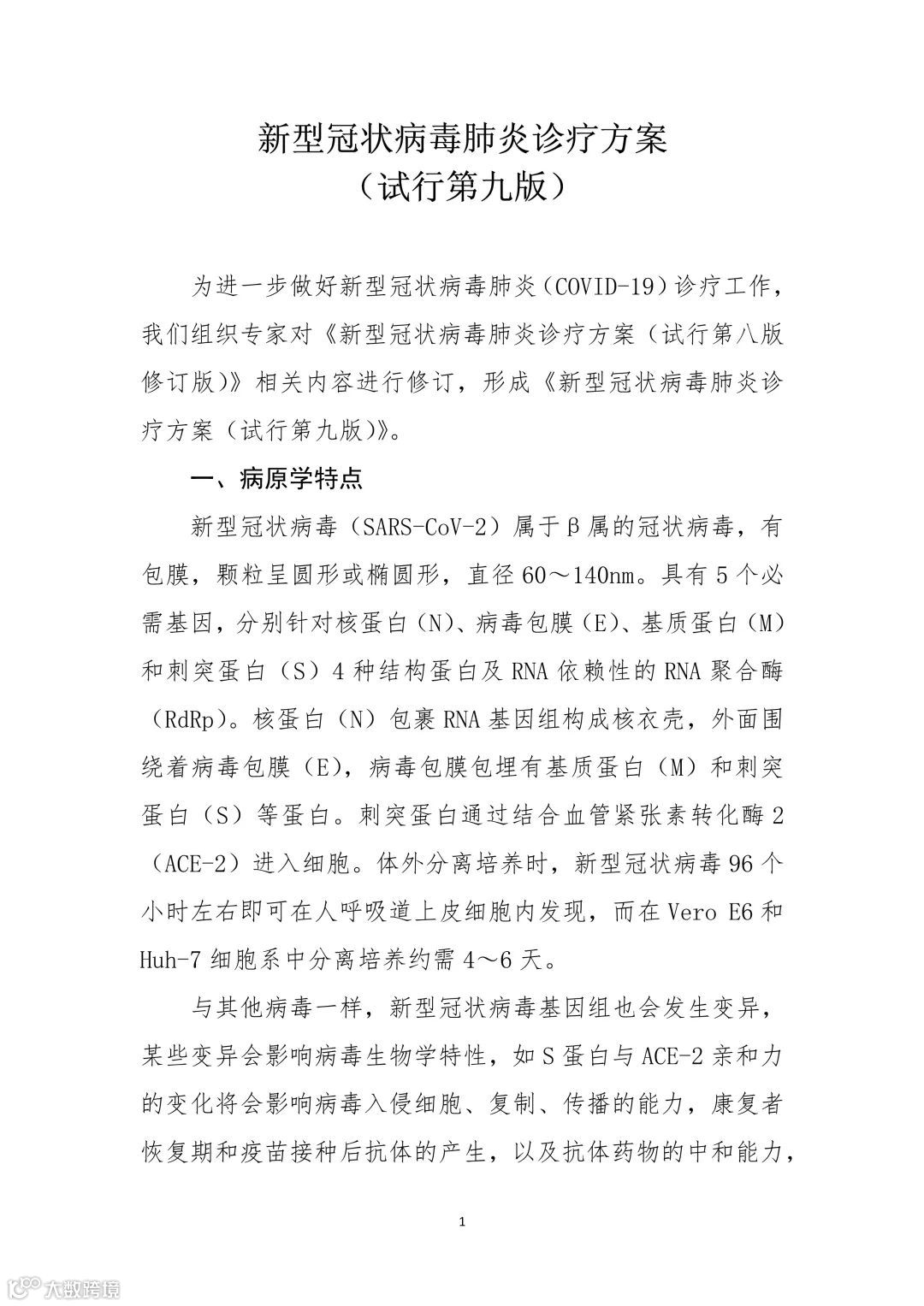 《新型冠状病毒肺炎诊疗方案(试行第九版)》修订要点