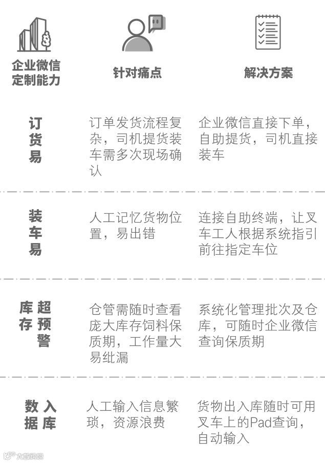 比如,业务人员可以随时随地与客户及养殖户进行沟通,遇到需求或疑问可及时通过企业微信向上反馈,大大提高了服务效率。