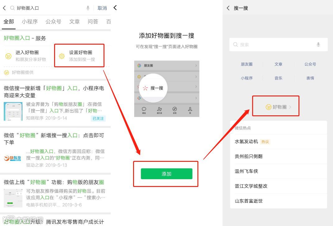 相比于让用户在搜索框里搜索才可看到「好物圈」,新的搜一搜入口更明显也更易被用户发现和使用。