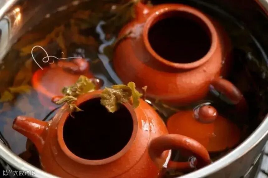 把壶放到平底锅的温水中,然后用小、中火把温水煮沸,沸腾5分钟后放入茶叶,最好是你准备这把壶喝什么茶就用这种茶叶,可用等级差的茶叶,茶叶量1-3两,放入茶叶等待10分钟后就可熄火。如果壶在温水煮开过程中你发现水面有油花或闻到异味,说明此壶可能被打过蜡、皮鞋油或壶的泥料中掺了假。